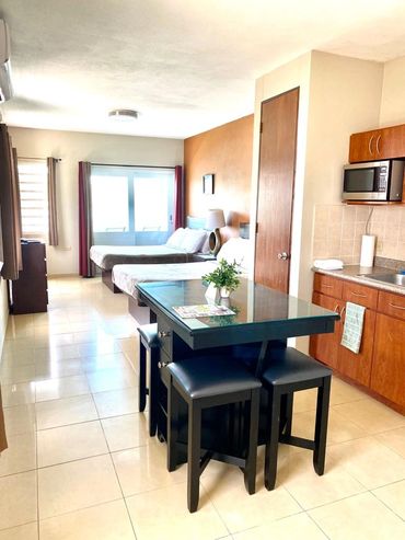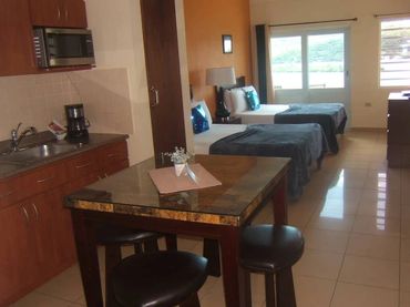 All villas have a balcony (villa 1 and 4 large, villa 2 and 3 small) with views of the ocean, Dakiti and Ensenada Honda. They include air conditioning, solar heater, towels, soap, internet, directv, backup generator and backup water tank.